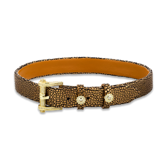 Os destaques ficam por conta das peças da Linha Galuchat em tons metalizados, em dourado e prata. Trata-se de uma inovação, sendo a primeira vez que esse revestimento nobre é utilizado desta maneira.